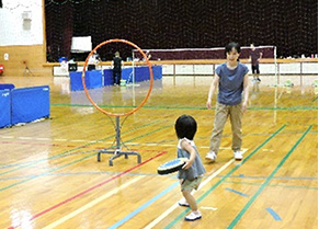8月11日(山の日の祝日)に吉田運動公園「こども無料開放DAY」を開催しました。135名の親子がアリーナでバレーボール・バドミントン・卓球・カローリングなど8種類のスポーツを自由に楽しみました。